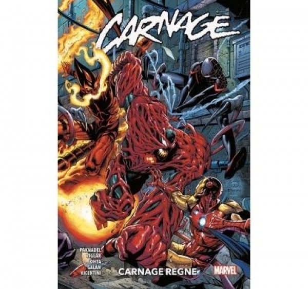 Lors du crossover King in Black, Tony Stark a créé une armure spéciale pour combattre Knull. Aujourd'hui, l'âme du terrible Cletus Kasady est piégée dans cette armure ce qui appelle donc le retour de Carnage ! Mais l'armure Extremis a besoin d'énergie et Carnage va devoir en trouver. Miles Morales pourra-t-il l'arrêter ? Sinon, où pourra-t-il trouver de l'aide ? Voici un crossover très spécial entre les séries Carnage, Miles Morales et Red Goblin (qui conte les aventures du jeune Normie Osborn, le Bouffon Rouge). Cette saga peut parfaitement se lire indépendamment des différentes séries et peut donc se savourer sans avoir suivi les derniers rebondissements des superstars des films Venom 2 et Across the Spider-Verse !