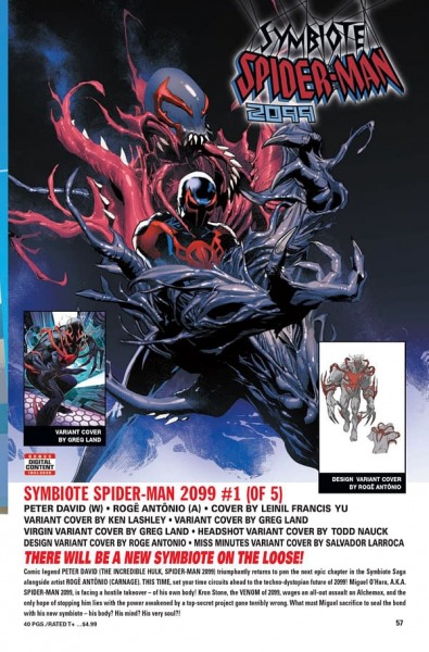 Comic legend PETER DAVID (THE INCREDIBLE HULK, SPIDER-MAN 2099) triumphantly returns to pen the next epic chapter in the Symbiote Saga alongside artist ROGÊ ANTÔNIO (CARNAGE). THIS TIME, set your time circuits ahead to the techno-dystopian future of 2099! Miguel O'Hara, A.K.A. SPIDER-MAN 2099, is facing a hostile takeover – of his own body! Kron Stone, the VENOM of 2099, wages an all-out assault on Alchemax, and the only hope of stopping him lies with the power awakened by a top-secret project gone terribly wrong. What must Miguel sacrifice to seal the bond with his new symbiote – his body? His mind? His very soul?!