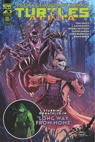 What's the world like without the TMNT? Since their time-spanning victory over Armaggon, the Turtles have started to pursue other interests, leaving a void in New York among humans and mutants alike. This special issue explores the effects this change has on those connected to the brothers, from Old Hob to Jennika, across the five boroughs and all the way through Mutant Island. It's hard to tell how important someone is until they are gone. And who better to write such a story than Tom Waltz, the man who scripted the first 100 issues of IDW's series and the co-writer of The Last Ronin, and resign TMNT artist Gavin Smith! Also, get your first glimpse of what is coming in a special prequel to the new TMNT #1, written by superstar scribe Jason Aaron (Scalped, Batman: Off-World) and drawn by white-hot artist Chris Burnham (Batman, Inc., Die!Die!Die!). Donatello has had a hard time since he came back from the future, and he's found himself in an unexpected place.