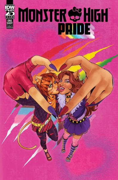 Hi, Ghouls. Rainbow-striped flags are flying everywhere, which must mean it's the best time of year: Pride Month. At Monster High, everyone belongs, and Pride Month is a time to skelebrate and show extra love to the LGBTQIA+ community.First, Hannah Templer and Siobhan Keenan conjure a story about expectations and role models. Clawdeen and Toralei are claws over tails for each other...but their summer DIY project, and a group of mischievous gnomes, is threatening the ghouls' relationship! Meanwhile, Ghoulia is writing fan fiction and is on the verge of starting a shipping war! Then, Megan Brown and Bowen McCurdy brew a fang-tastic love story. Kieran Valentine thinks love sucks. He enlists the help of his (very cute) Bite-ology partner, Spelldon Cauldronello, to create a potion that will drain him of the feeling forever. But after spending time with Spelldon, will he have the guts to follow through? Get in from the start as IDW kicks off a whole new run of comics set on the most spooktacularly inclusive campus!