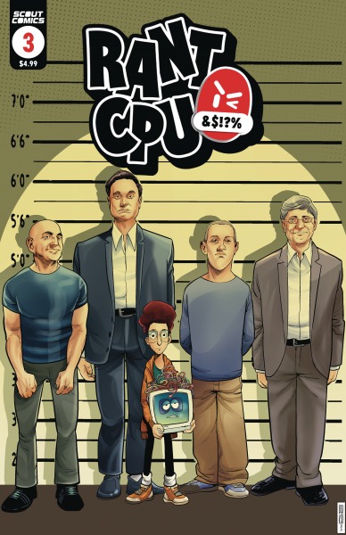 RANT CPU follows the misadventures of Silicon Valley's next big thing-an A.I. robot created by a hormonal and hyperactive 13-year old and powered by a mysterious energy source of alien origin. In this new one shot Jeff teaches Rant the pains and pitfalls of Late Stage Capitalism and Hustle Culture! Through Jeff's Rent-a-Rant, our poor robot gets worked to the bone, or well, wires? And while Jeff and Vik enjoy the spoils of Rant's hard work, a serious issue arises... Rant's Alien Power Source! Can they resist the pitfalls of greed and excess long enough to save Rant? Backup Story: Mort Stormberg and Rant-after a Drunken Night out, Mort stumbles home and crashes into Rant and gives him a history lesson the the "lost beauty" of the 1960s. Rant has some notes...